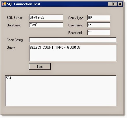 The server was not found or was not accessible. Verify that the instance name is correct and that SQL Server is configured to allow remote connections. (provider: SQL Network Interfaces, error: 26 - Error Locating Server/Instance Specified)No matter what we tried, we couldn't get a connection with the .NET Dynamics GP integration, and only after creating a test SQL connection app was I able to identify that GPConnNet was the culprit, and not a network or firewall issue.